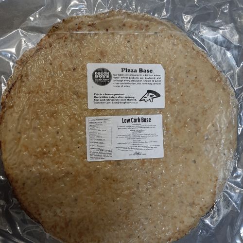 Dough Boys low carb 30cm pizza bases pack of 3 bases, vegan friendly, Low Carb (Banting Base) contains only 31g carbohydrates per base (1x 30cm base) Gluten Friendly, egg and yeast free, thin based, hand rolled and cooked in a wood fired pizza oven, can be used direct from frozen as they are thin base and thaw quickly.
